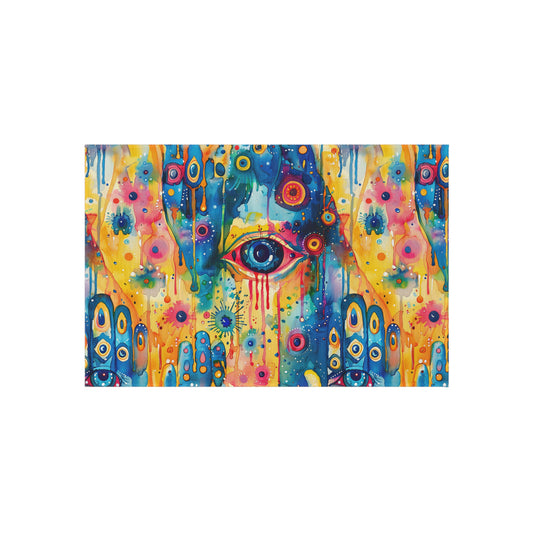 Aurora Talisman . Vibrant Eye Pattern Outdoor Rug – Colorful Bohemian Patio Decor