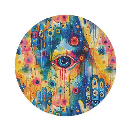Beholder. Artistic Evil Eye Rug – Layer Your Floors with Protection & Style. Round Rug
