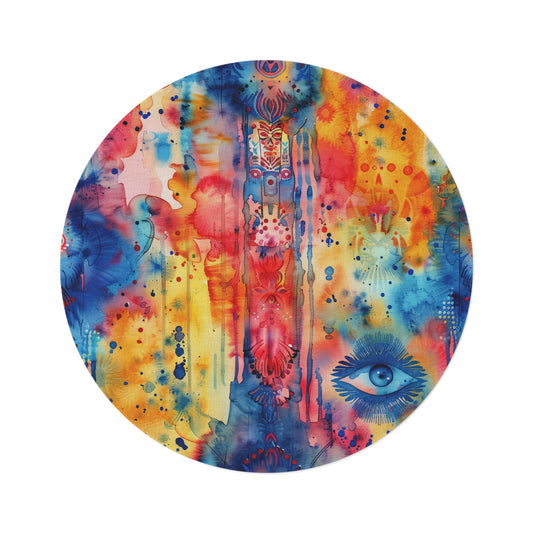 Aurora Talisman. Bohemian Eye Round Rug - Colorful Floor Decor for Vibrant Spaces