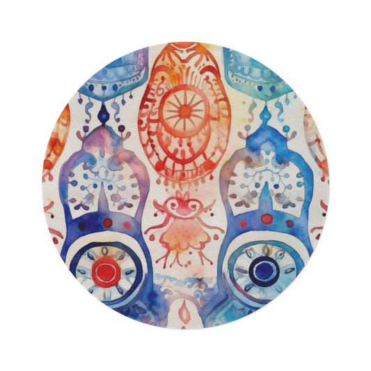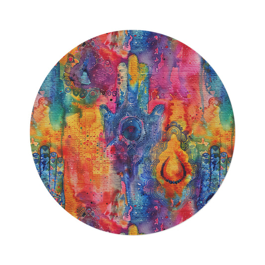 Prismatic Hamsa. Bohemian Eye Round Rug - Colorful Floor Decor for Vibrant Spaces