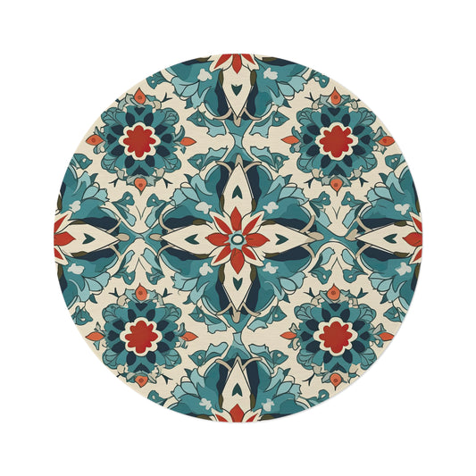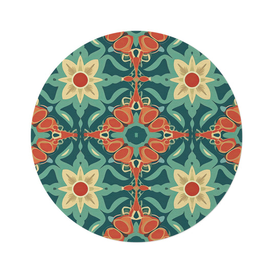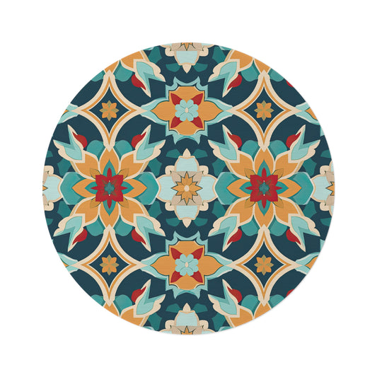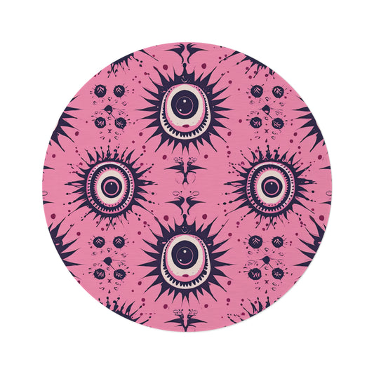 Sleek Cherry. Bohemian Eye Round Rug - Colorful Floor Decor for Vibrant Spaces