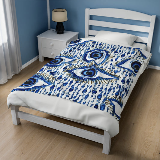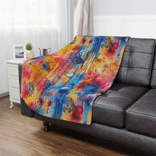 Hamsa Spectrum-topaz. Cozy Artistic Microfiber Blanket.