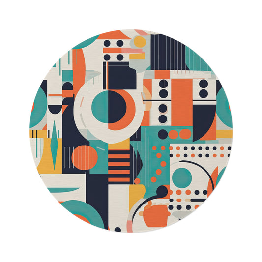 Echoes of the Analog Future. Artistic Retro-Futuristic Round Rug