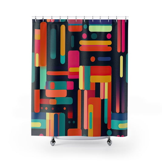 Dimensional Melody. Futuristic Nostalgia Shower Curtains