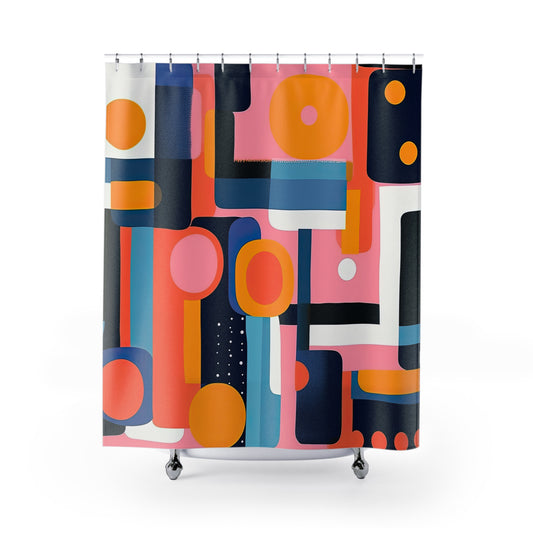 Echoes of the Analog Future. Artistic Retro-Futuristic Shower Curtains