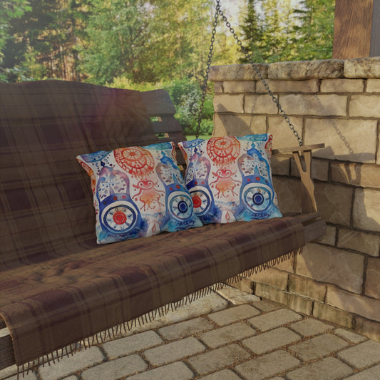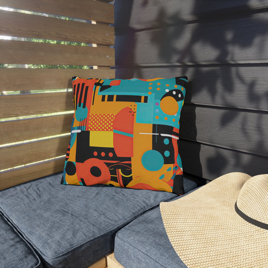 Quantum Rhapsody. Retro-Inspired Futuristic Outdoor Pillows