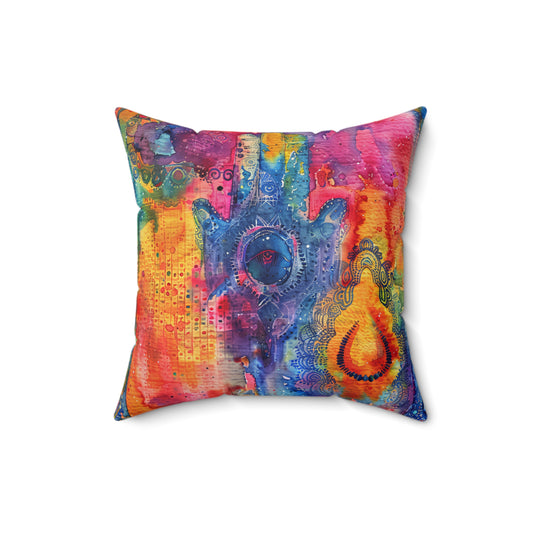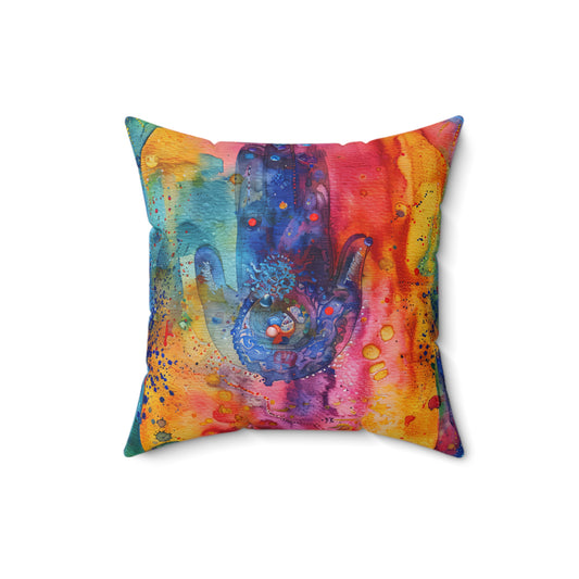 Chromatic Protector Hamsa- Decorative Spun Polyester Cushion