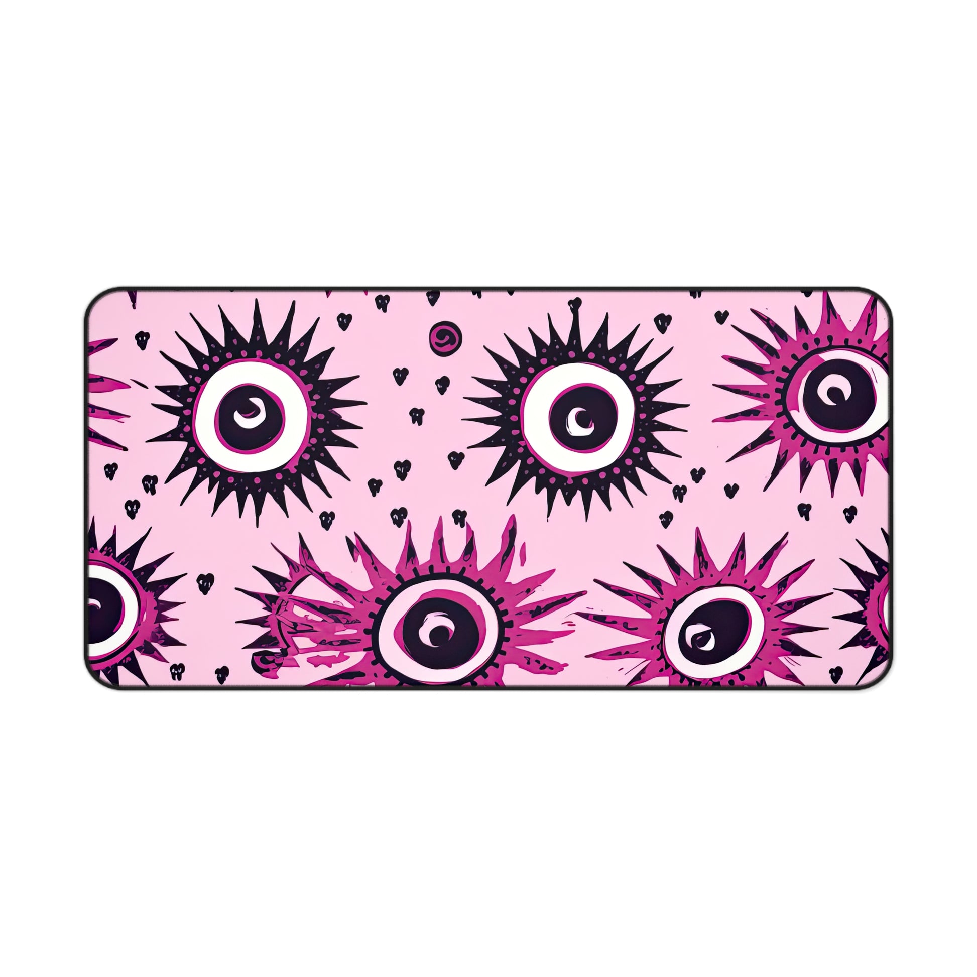 Protect your desk in style with the Evil Pink Eye Desk Mat! This unique interpretation features ancient symbols of protection - the evil eye and hamsa hand - in a colorful and artistic design. Keep your workspace free from bad vibes and stand out with this quirky and playful desk organizer!